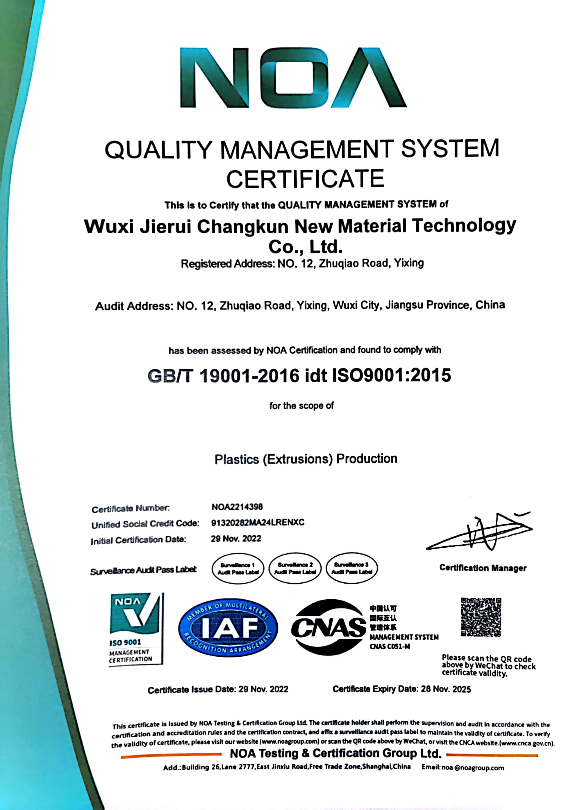 Wuxi Jierui Changkun New Material Technology Co., Ltd è specializzata nella ricerca, sviluppo e produzione di estrusioni personalizzate realizzate in PVC di alta qualità ed eco-compatibile Situato a Yixing, una bellissima città con industrie ben sviluppate nella provincia di Jiangsu. Vicino al porto di Shanghai, la nostra fabbrica gode di trasporti rapidi e convenienti. I nostri tecnici sono qualificati con un'esperienza di 30 anni nella progettazione e produzione. La nostra fabbrica è ben equipaggiata con 15 linee di produzione avanzate e una tecnologia di produzione ben sviluppata. I nostri prodotti vendono bene sia nel mercato interno che nei mercati esteri come Regno Unito, Stati Uniti, Canada, spagnolo, Germania, Francia, Australia e così via. Aggiorniamo al principio aziendale di fornire buona qualità e servizio, mantenendo una buona reputazione e costante innovazione. La nostra azienda sarà impegnata nel mercato globale con alta qualità, alta reputazione e prezzi favorevoli.